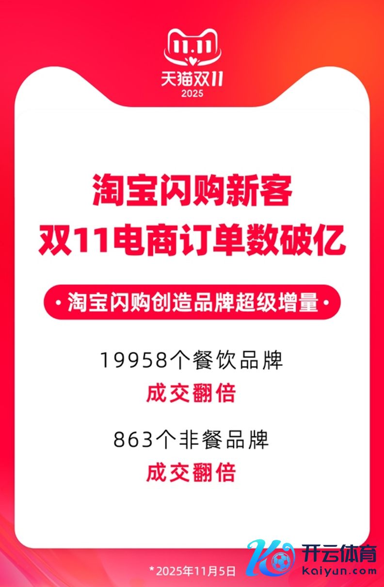 11月7日,据天猫双11数据表露,驱散11月5日,淘宝闪购带来的新用户在双11时分的电商订单数已逾越1亿。这届双11,淘宝闪购正在成为品牌增长的超等增量,对电商的拉当作用突显。