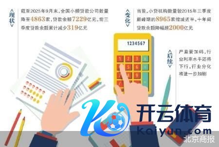 11月5日,北京商报记者注意到,中国东谈主民银行最新数据骄傲,扫尾2025年9月末,宇宙小额贷款公司数目降至4863家,贷款余额7229亿元,前三季度贷款余额累计减少319亿元。行业正履历深度退换,加快出清中。