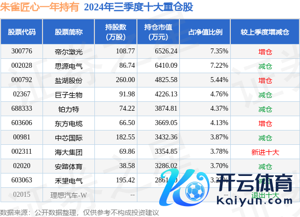 朱雀匠心一年捏有为搀和型-偏股基金,字据最新一期基金季报露馅,该基金钞票成就:股票占净值比66.07%,债券占净值比2.48%,现款占净值比5.81%。基金十大重仓股如下: