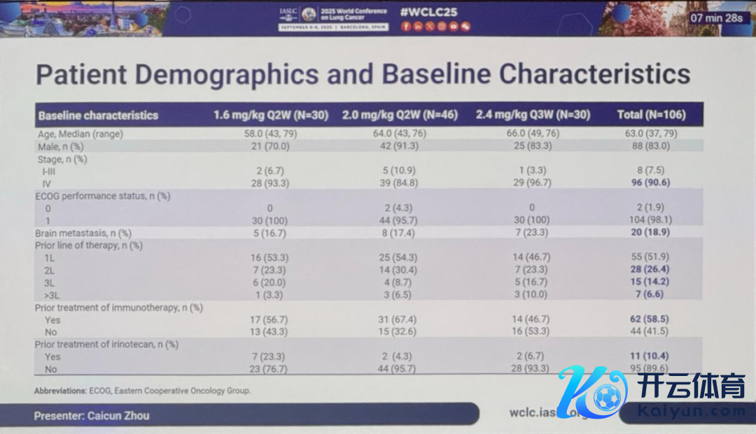 参谋I期临床历练放肆2025年6月13日,在1.6mg/kg Q2W、2.0mg/kg Q2W和2.4mg/kg Q3W三个剂量水平共入组106例SCLC患者。